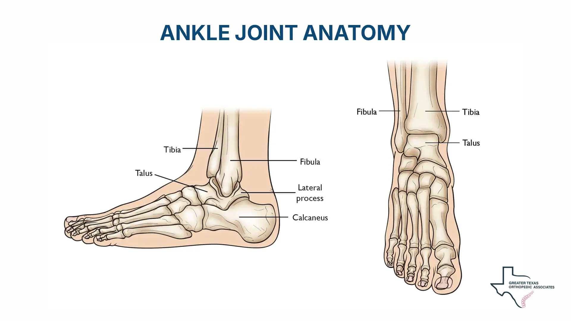 The ankle joint, primarily the tibiotalar joint, is formed by the meeting of the tibia (shin bone), the fibula, and the talus (ankle bone). In a healthy joint, this cartilage acts as a slippery shock absorber, allowing bones to glide smoothly against one another during movement. When this cartilage wears away, the underlying bones may rub together, resulting in persistent pain, swelling, and stiffness.
